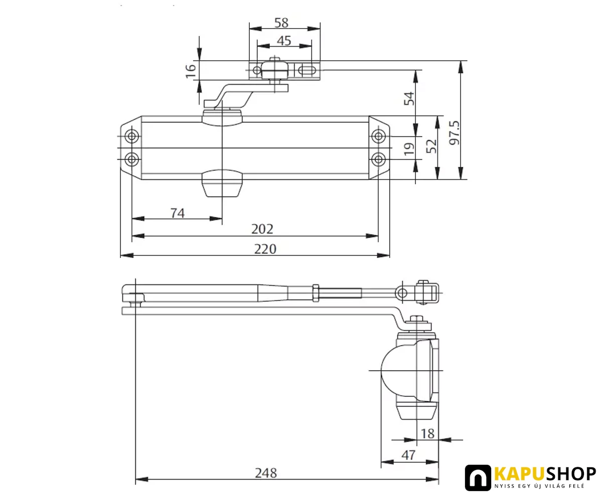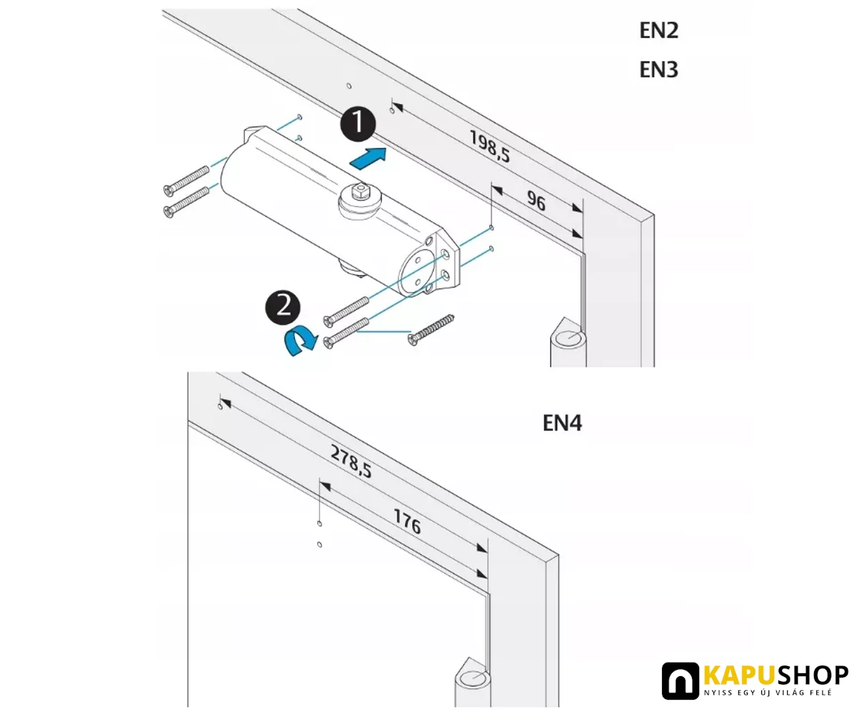 40kg-60kg-80kg ajtósúly, 850-950-1100 mm ajtószélesség, EN 2-3-4 csukóerő
