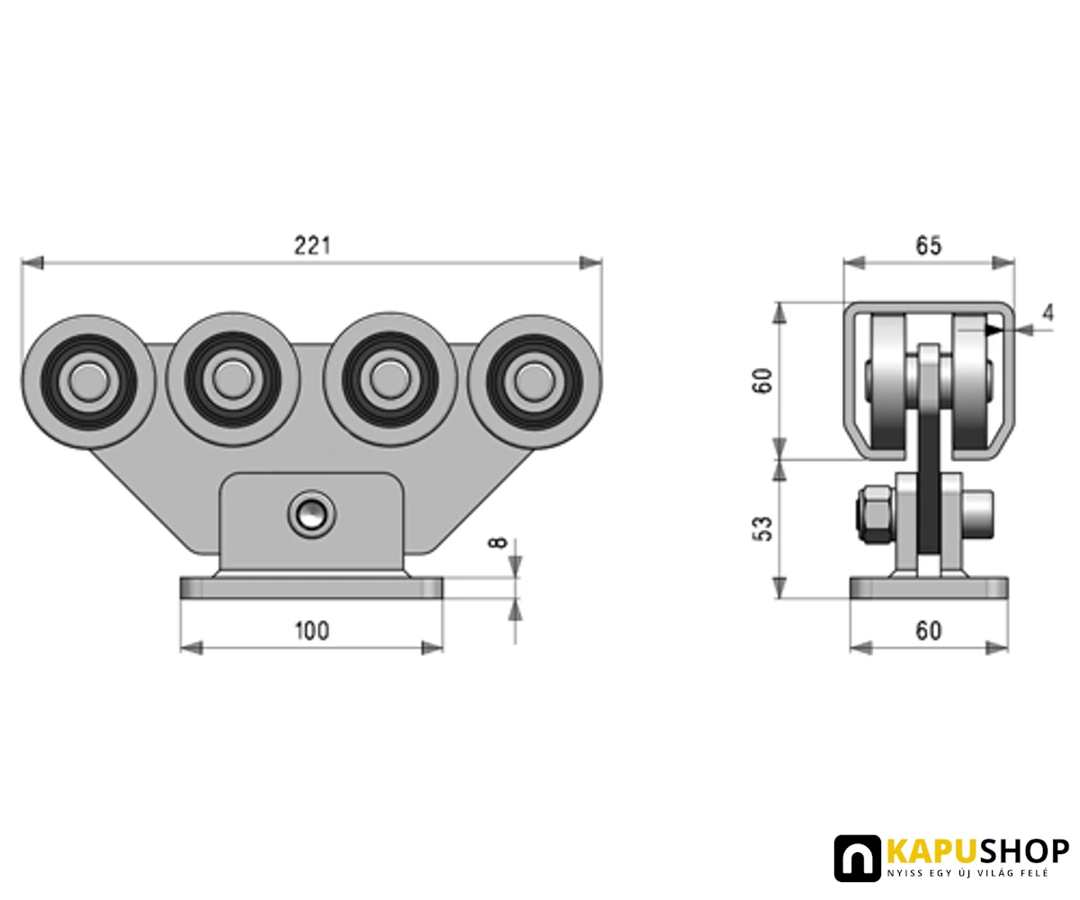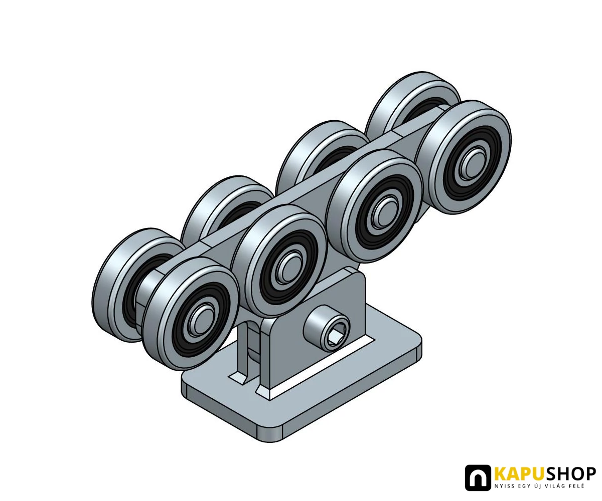 Úszókapu görgő G4F, C60-as C-sínhez 5 csapágyas furatos talppal