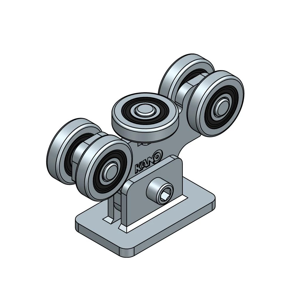 Úszókapu görgő, öt görgős, csavarozható, 60x60x4mm-es C-sínhez